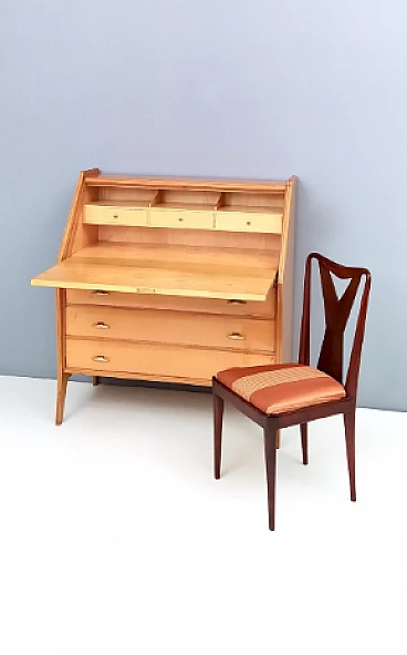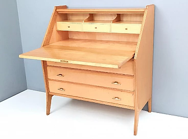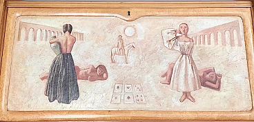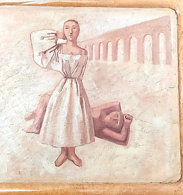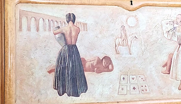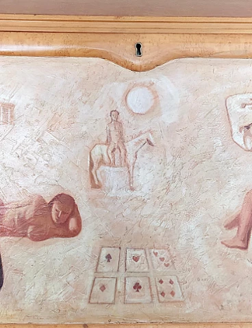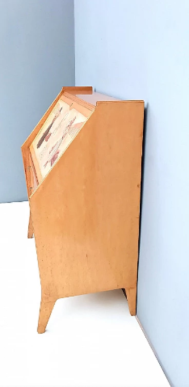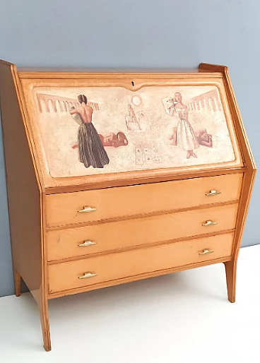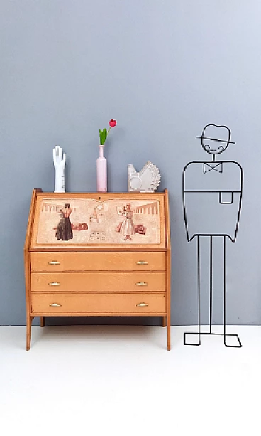 Birch secrétaire with flap painted in the style of Massimo Campigli, 1950s