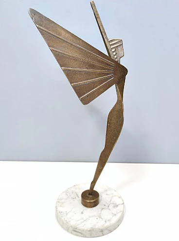 Brass sculpture depicting the Winged Victory with marble base, 1940s-50s. Total height: 68 cm. Height excluding the base: 65 cm.