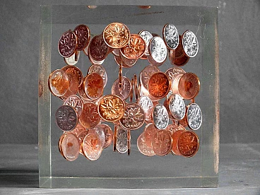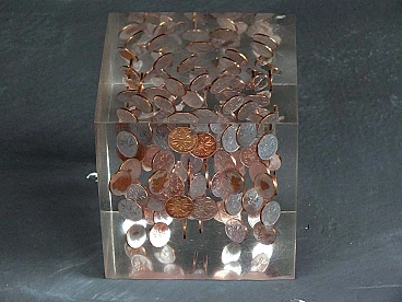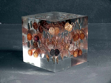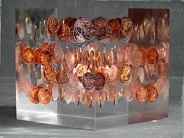 George Schreber, 1 cent, plexiglas and lucite cubic sculpture, 1974