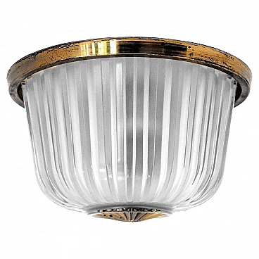 Pressed crystal and brass ceiling lamp by Livio Seguso, 1940s