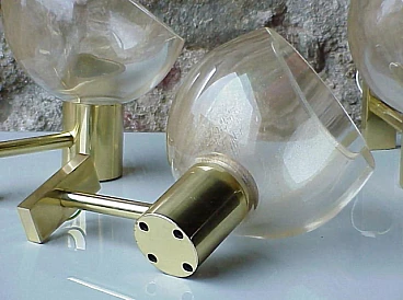 3 Brass and glass wall lights by Flavio Poli for Seguso, 1960s