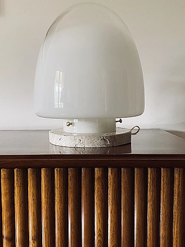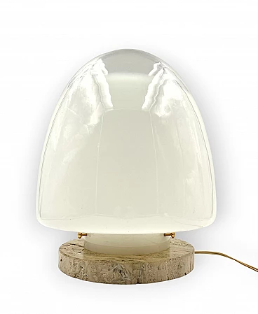 Travertine and glass table lamp by Giusto Toso for Leucos, 1970s