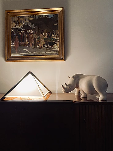 Brass and glass pyramidal table lamp by Christos, 1970s