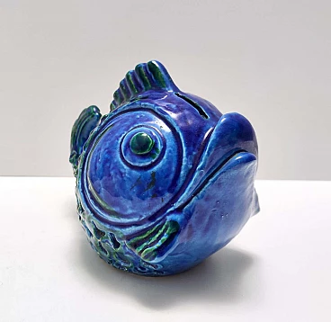 Rimini blue ceramic piggy bank by Bitossi, 1970s