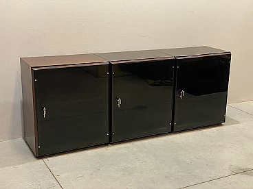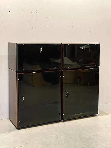 Rosewood and black glass sideboard by Vittorio Introini for Saporiti, 1970s