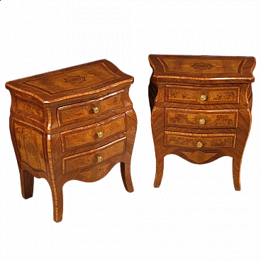 Pair of Louis XV style inlaid wood bedside tables, 1970s
