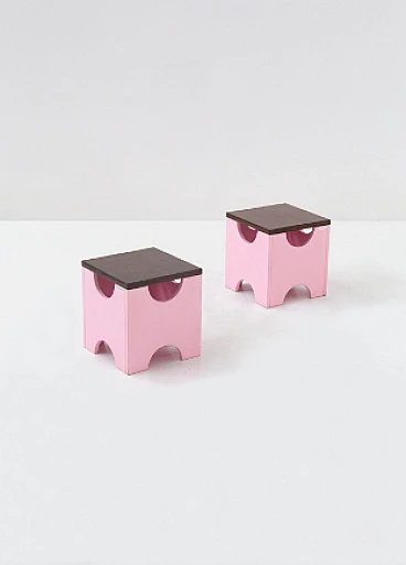 Pair of pink Dado T29 stools by Ettore Sottsass for Poltronova, 1960s