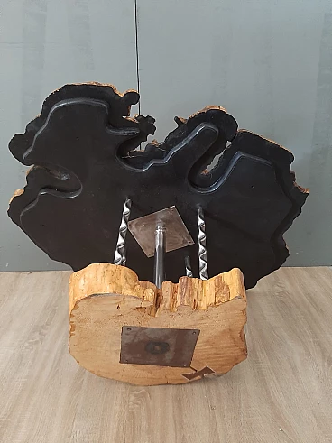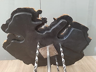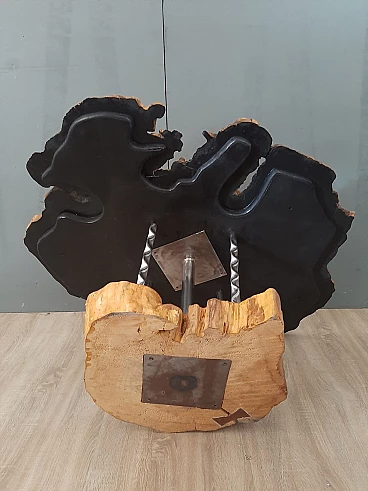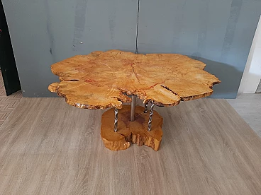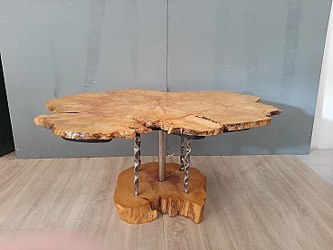 Plane tree wood and iron coffee table