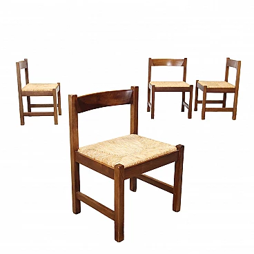 Group of four chairs designed by Michelucci in 1964. Made of stained beech wood with woven raffia seats.