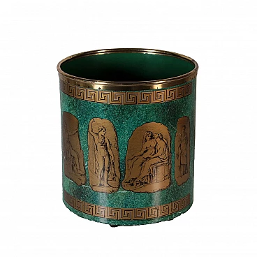 Metal card holder basket with gold decorations in classic all-round taste. Under the brand base of the manufacture. Object in good condition, has small signs of wear and scratches.