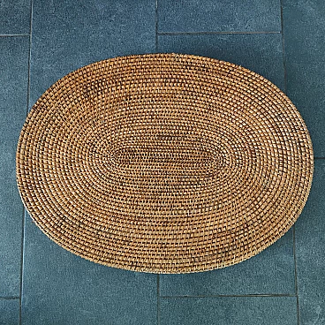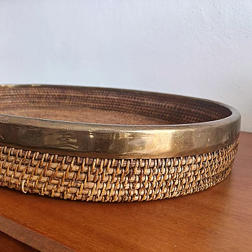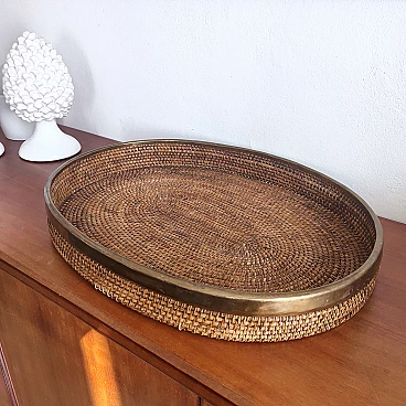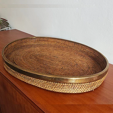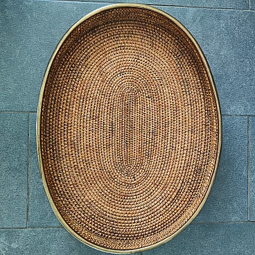 Wicker and brass tray in the style of Gabriella Crespi, 1970s