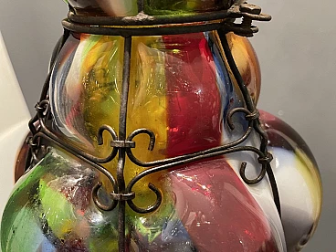 Wrought iron and multicolor glass hanging lamp, 1950s