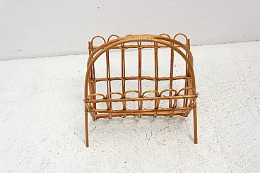 Rattan magazine rack by Jan Kalous for Úluv, 1960s