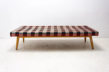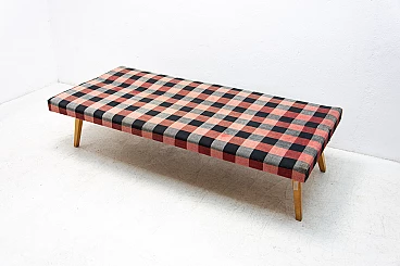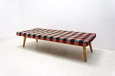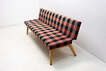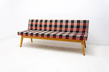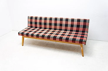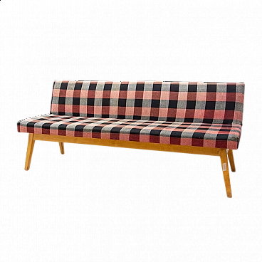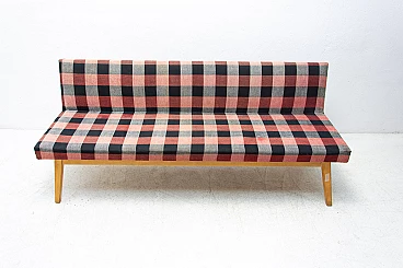 Sofa bed by Miroslav Navrátil made in the former Czechoslovakia in the 1960s. Beech structure and colored checkered fabric cover. Sleeping surface: 180 x 82 cm. Seat height: 42 cm.