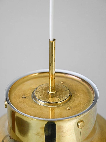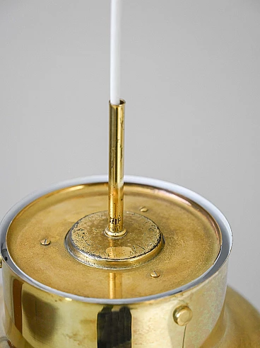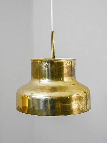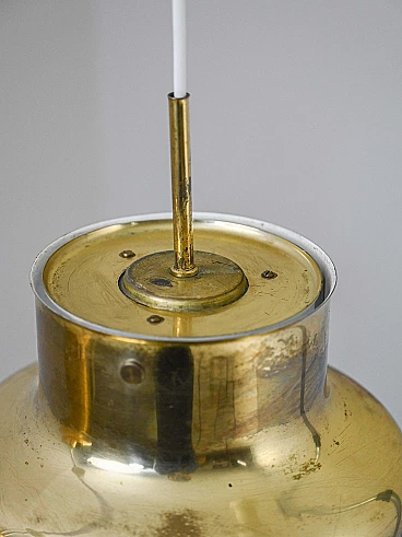 Bumling' model of a pendant lamp designed by Pherson for Ateljé Lyktan in the 1960s. This pair of lamps is the smallest version of the existing models, with a diameter of 25 cm. The brass shade makes these pendant lamps valuable and elegant furnishing accessories. Good condition. They show some signs of time. Please pay attention to the photographs.