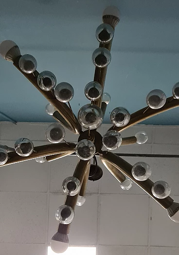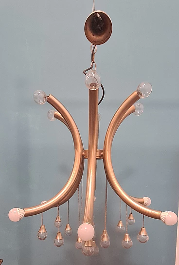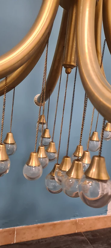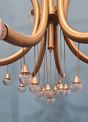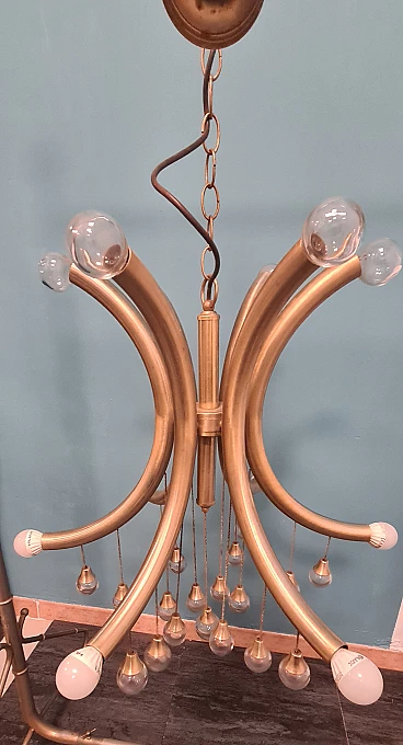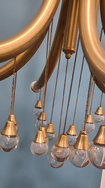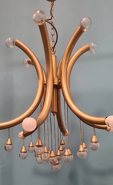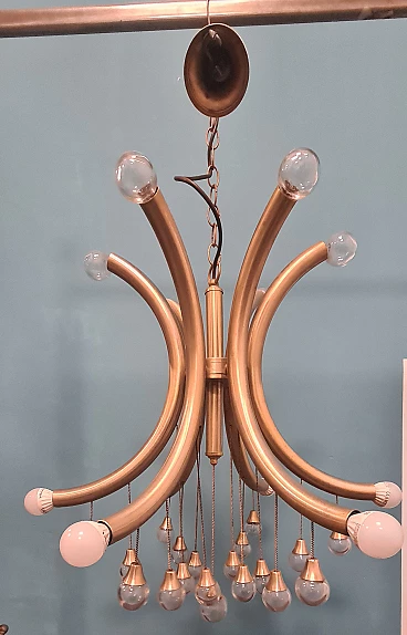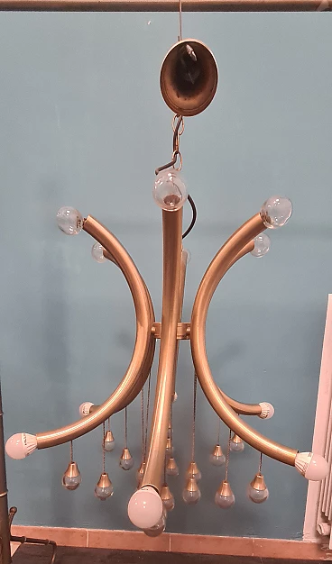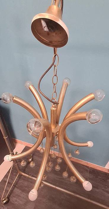 Six-light brass and glass chandelier by Gaetano Sciolari, 1970s