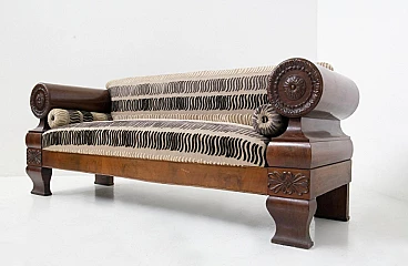 Biedermeier style carved wood and velvet sofa, early 20th century