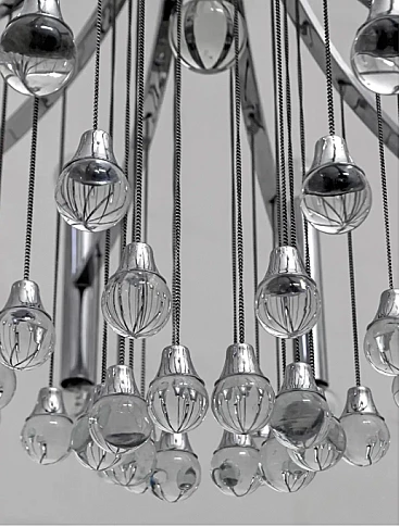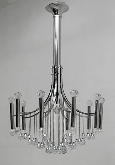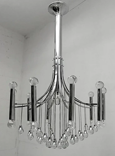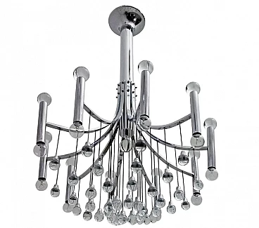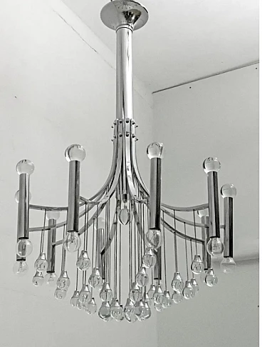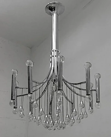 Glass and chrome chandelier by Gaetano Sciolari, 1970s