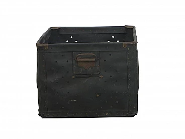 Industrial storage boxes in dark glazed cardboard and metal, 1950s, Metal structure with handles. Some signs of use.