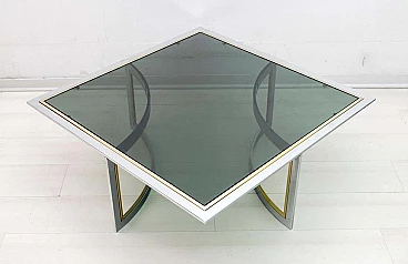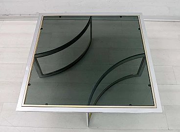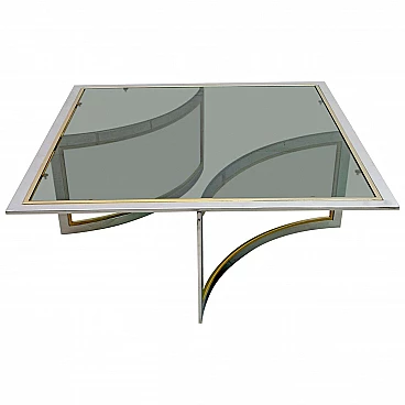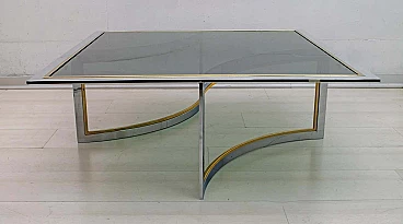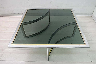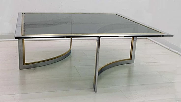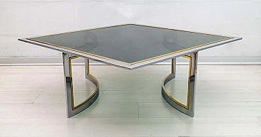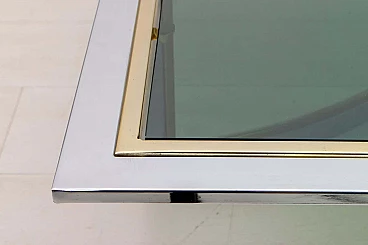 Brass and chrome coffee table with glass top in the style of Romeo Rega, 1970s