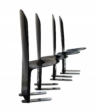 4 Pellicano chairs in curved black lacquered wood by Luigi Saccardo for Armet, 1970s