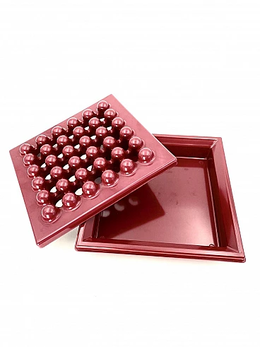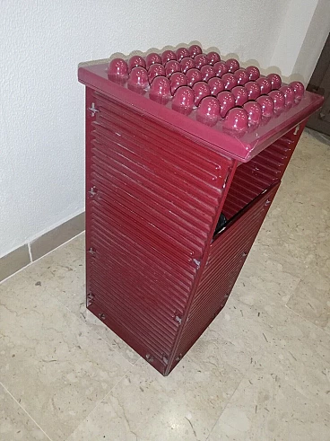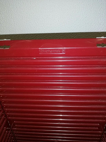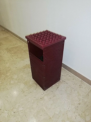 Burgundy plastic trash can with ashtray model no. 45 by Ettore Sottsass for Olivetti Synthesis, 1970s. Iconic object belonging to the Synthesis 45 office furniture system. Out of production. Signature present on the back. One corner of the ashtray is slightly damaged.