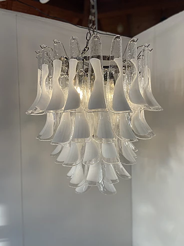 Steel and white Murano glass chandelier by Sergio Mazza for Mazzega, 1960s