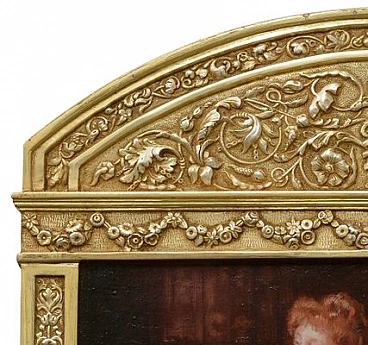 Private readings by Angelo Granati, Italy 2013. It is his reinterpretation of a large antique painting 'Comparisons' by Sir Lawrence Alma-Tadema. Oil on panel 15 x 25 cm, gilded bronze frame from 1860, exterior measurements 37 x 29 cm.