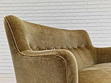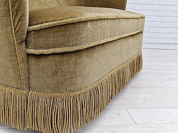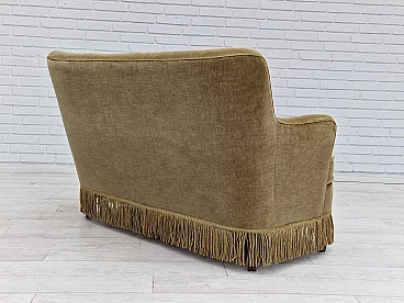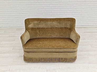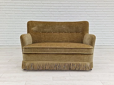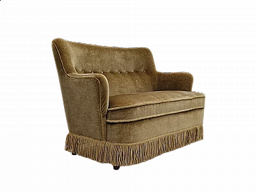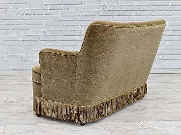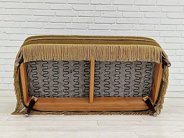 Danish beech and velvet two-seater sofa with fringes, 1960s