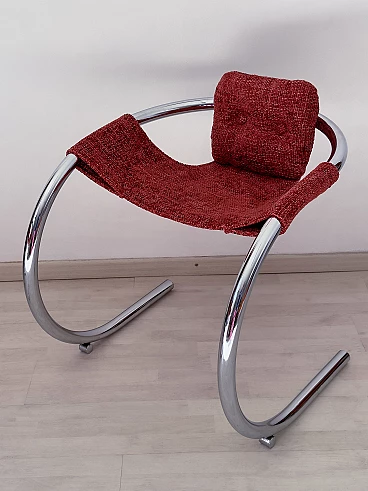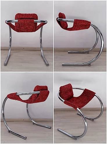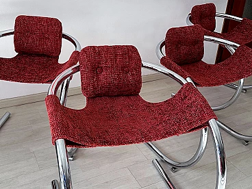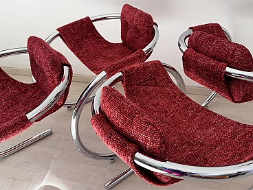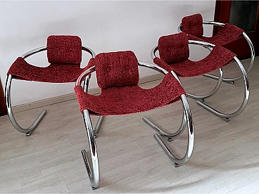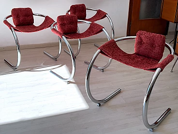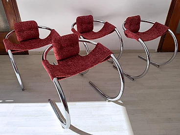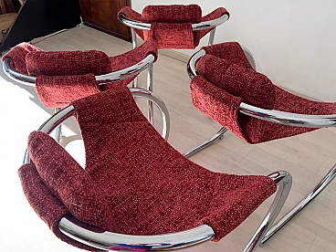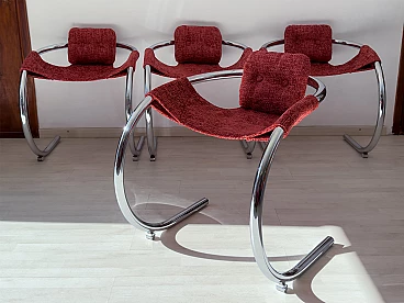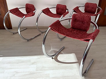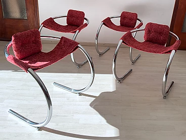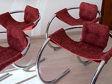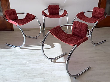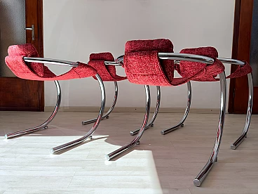 4 Red fabric chairs with curved metal frame by Byron Botker for Landes, 1970s