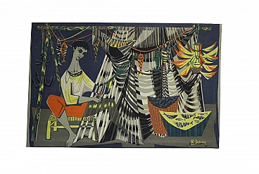 Tapestry with fisherman by Debieve Robert, 50s