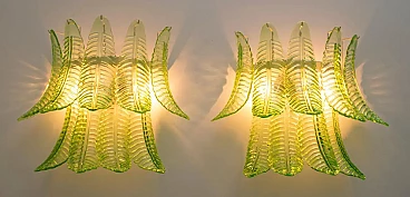 Pair of Murano glass palm leaf wall sconces, 1970s