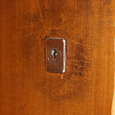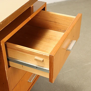 Desk with double drawer column. Walnut veneer, formica top and chrome-plated metal legs.