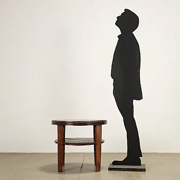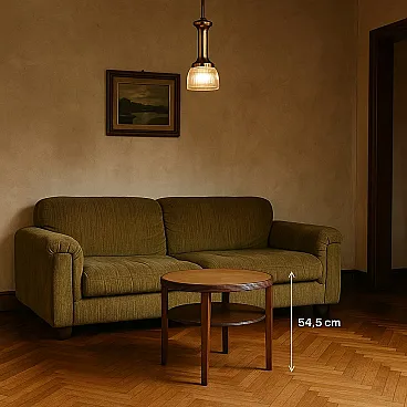 Small centre table with double top; stained beech wood and wood-effect formica top.