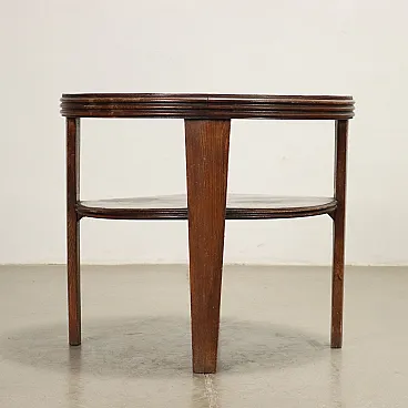 Round coffee table in stained beech with wood-effect formica top, 1940s