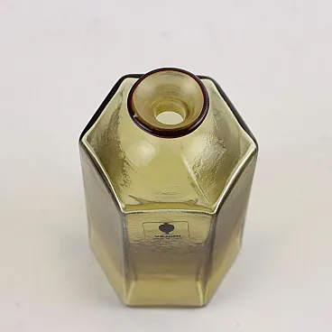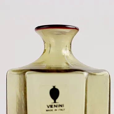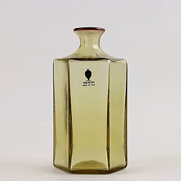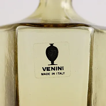 Hexagonal-shaped glass vase. Under the base it shows the signature of the manufactory in pointillation "Venini Italia 80". Adhesive label.