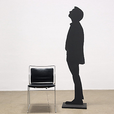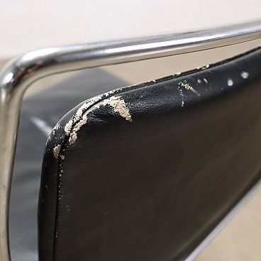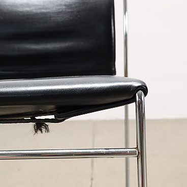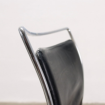 Four chairs in chrome-plated tubular metal, foam padding and leather upholstery.