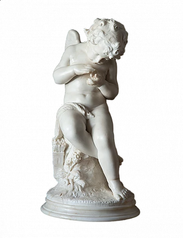 Antique sculpture in white statuary marble depicting a winged putto signed Domenico Pagano. The work is of great value and sculptural quality, highlighted in the attention to anatomical details and the rock where the putto sits. The care and precision of the details and the fineness of the face place it between the second and third decade of the 19th century. Provenance Sicily, 19th century. Very good state of preservation Diameter 35 cm, height 67 cm. Certificate of Authenticity. We are at your disposal for further clarification or photographic details. Shipping throughout Italy, Europe and the rest of the world at very low prices, with maximum security and traceability. Shipping will be agreed privately. We wish you a good day.