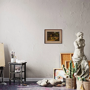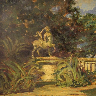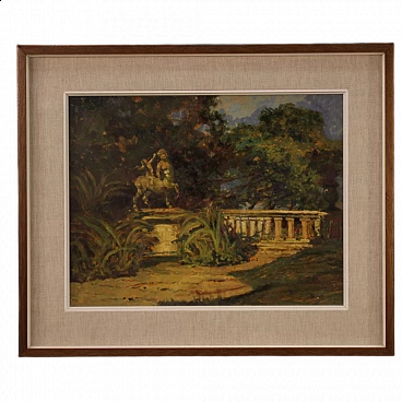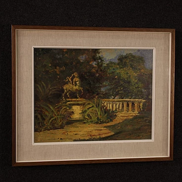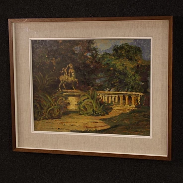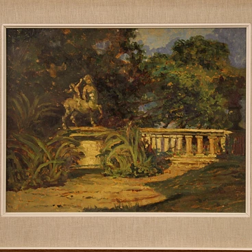 Landscape painting in impressionist style, oil on cardboard, 1960s