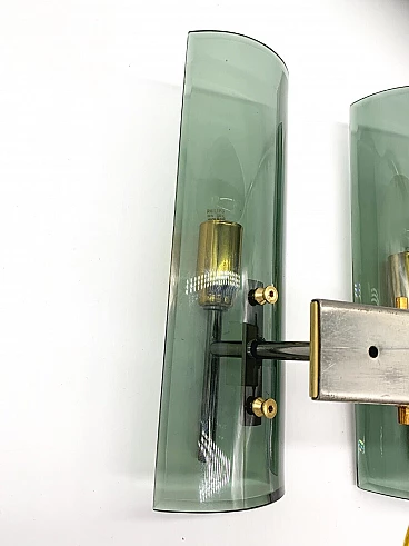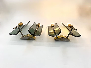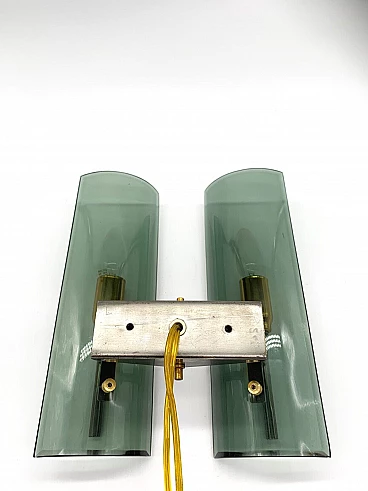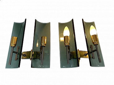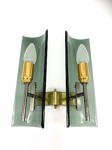 Pair of double sconces made of iron, brass and glass by Veca, late 20th century