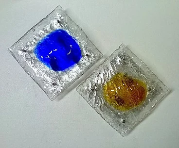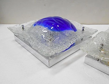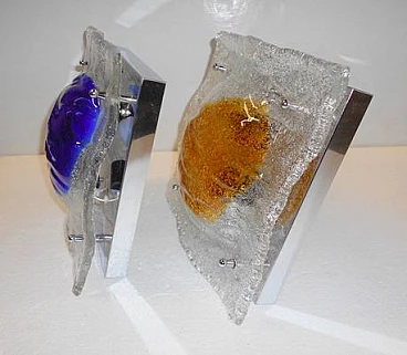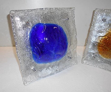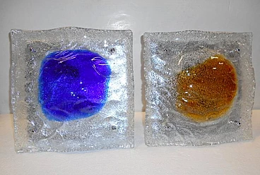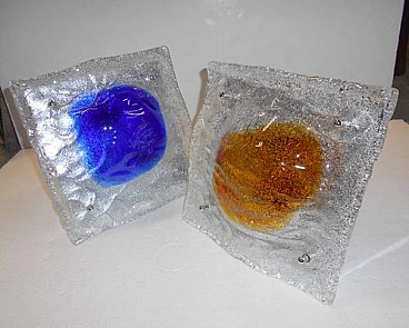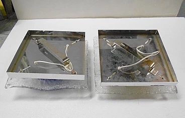 Pair of square Murano glass wall lamps by Tony Zuccheri for Mazzega, 1970s