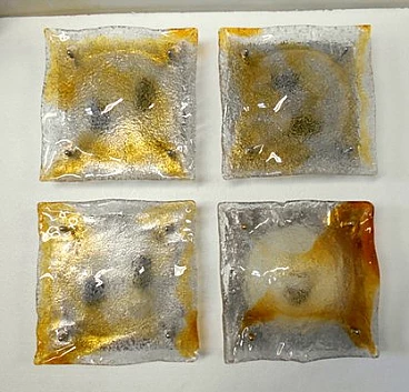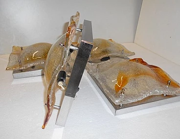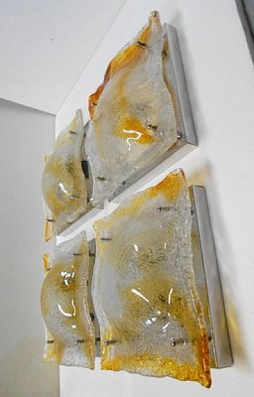 4 Murano glass wall lamps with metal support by Toni Zuccheri for Mazzega, 1970s