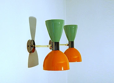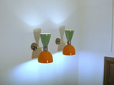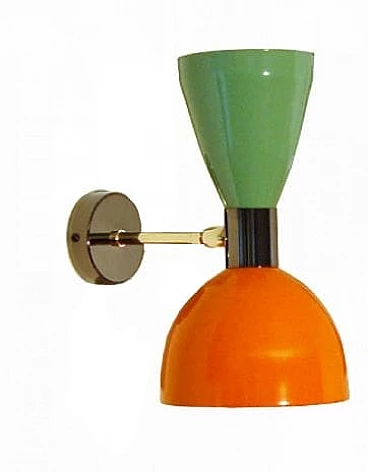 Brass and green and orange lacquered metal wall light by Deyroo Lighting