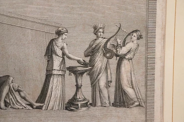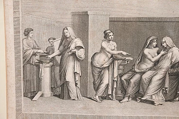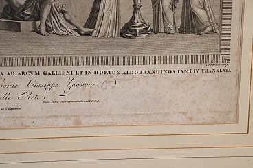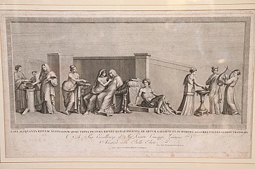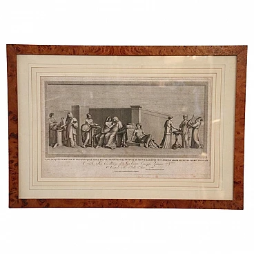 A beautiful 18th century etching print with a walnut-root frame. It is an engraving by the Italian engraver Alessandro Mochetti (1760 - 1812). Biographical information on Alessandro Mochetti is scarce. He was a pupil of Giovanni Volpato and worked mainly with Roman publishers. He participated in the production of the illustrative plates for the work, by several hands, The Raphael Bible, published in 1789 by Pietro Paolo Montagnani and which had subsequent editions and contributed his engravings to illustrate the work Il Duomo di Orvieto. For the series of prints Episodes in the Life of Pius VI he engraved the panel Departure from Rome of H.H. Pius VI for Siena escorted by French dragoons followed on the night of 20 February 1798. He engraved images from paintings by many artists, including Francesco Manno. His son Giuseppe was an engraver and worked at the Calcografia Romana (today the National Institute for Graphics). Perfect condition. We advise you to take a close look at all the attached photos. Proposed at a negotiable price, we invite you to send us your proposals and we will gladly evaluate them. Dimensions with frame 50 x 71 cm. Professional packaging, insured shipping with couriers, delivery by appointment only on street level, no porterage on floors.