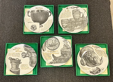 5 Plates by Piero Fornasetti for Martini & Rossi, 1960s