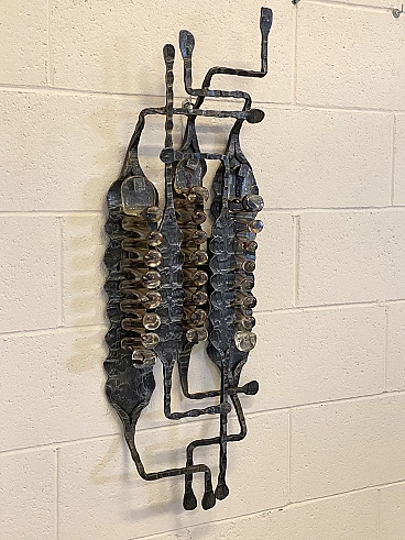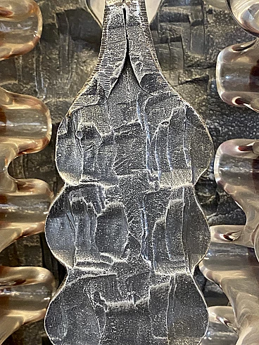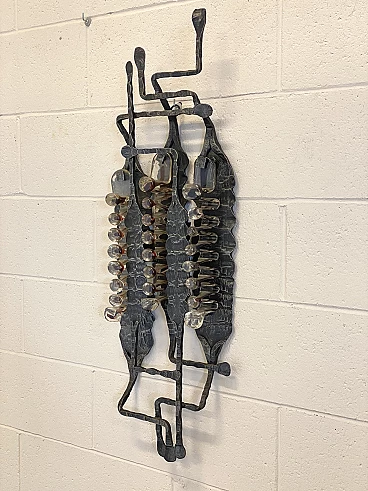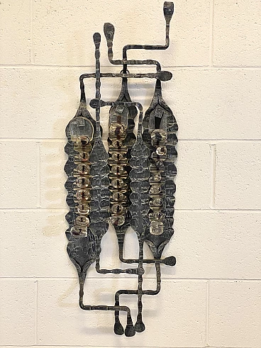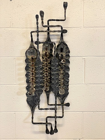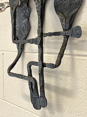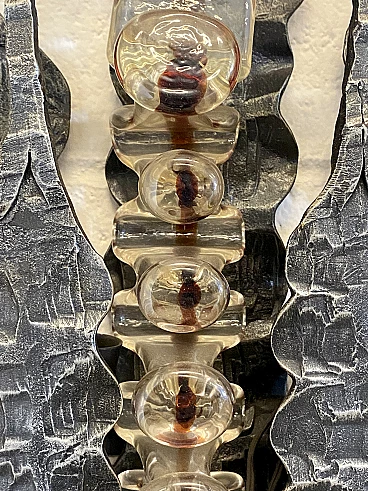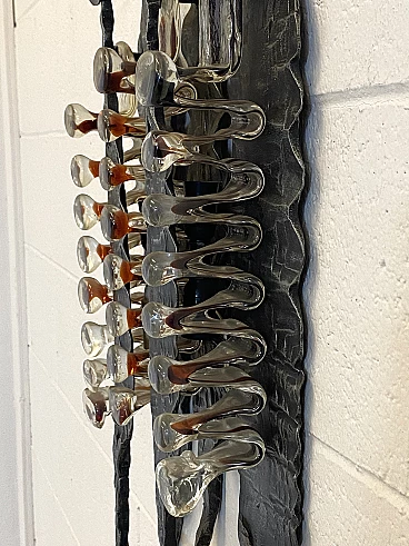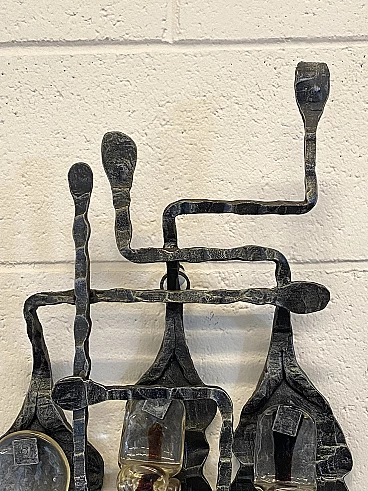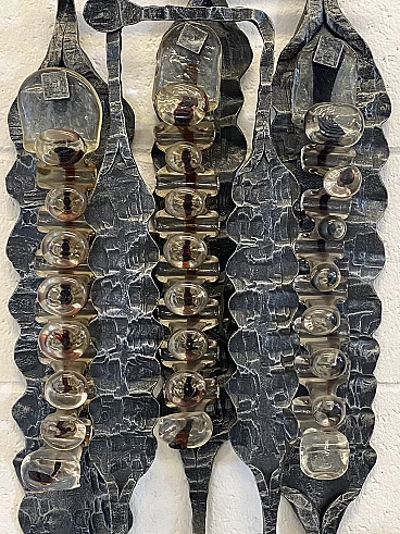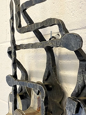 Brutalist four-light wall lamp in wrought iron and glass, 1960s