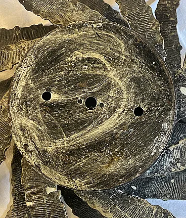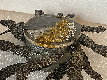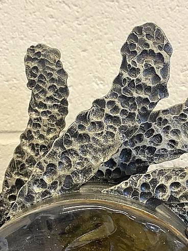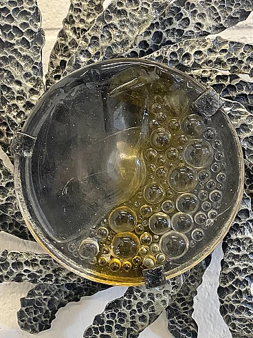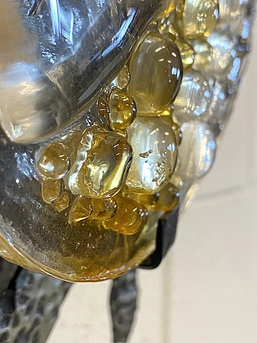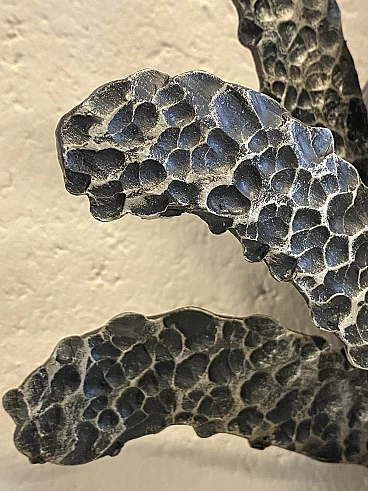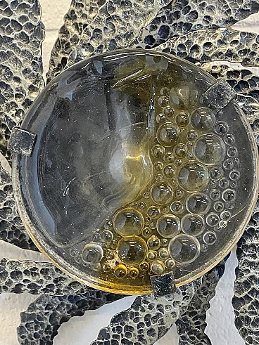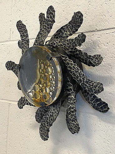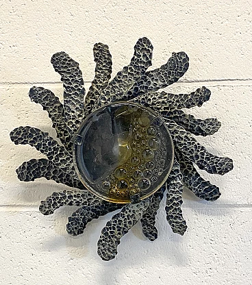 Brutalist two-light wall lamp in wrought iron and glass, 1960s