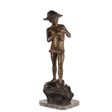 Giovanni Varlese, young fisherman, bronze sculpture, early 20th century