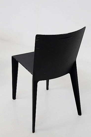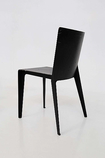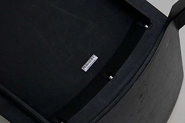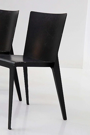 Both pieces are made of 'SMC', a fibreglass-reinforced resin-polyester composite material, and are finished in matt black paint. Under the seat we notice the original Molteni label. The lines of the chairs are very geometric with a great clean and essential design. The legs come to life through a pyramid line. The set is ideal for modern living rooms and geometric and essential environments. It won the ICFF Editors Award (USA) in 2001.