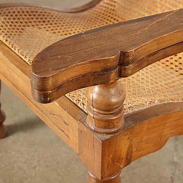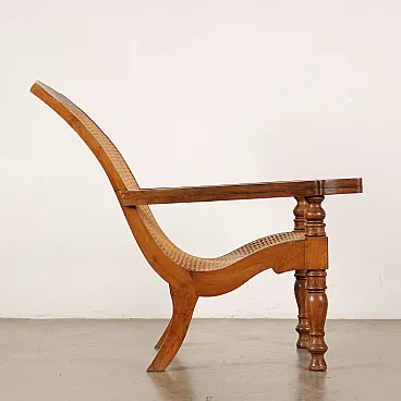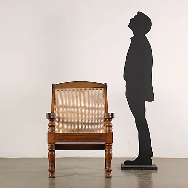 Armchair with trellis back and seat, under arms and turned legs on the back.